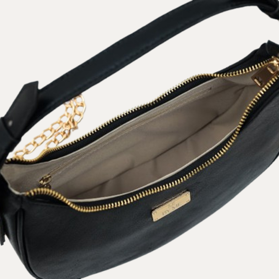 Compacta e funcional, esta bolsa em couro legítimo New Veneto, com alça de mão em couro e de ombro em correntaria banhada.